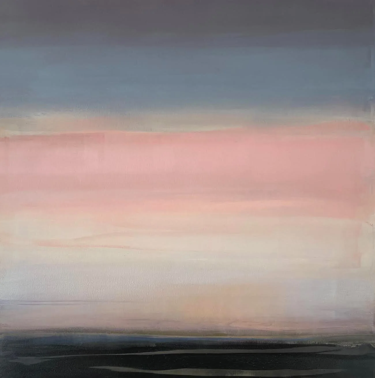 " This work is about my exploration into the ephemeral qualities of twilight. I am interested in resolving the discord between the frenzied and meditative elements of time. There's no real way to control momentum, but we have all been witnesses to its varying speeds. We live in a frenetic world, in which we have perceived the fleeting comings and goings of the days, weeks, months and years. We also have had moments that are frozen, and our recall of those moments help to magically recycle our relationship to time and space. Sometimes it feels like déjà vu. Twilight happens to be one of my favorite times of day. It is where the light greets the darkness, with a short pause. Color becomes intensified, and the structure of the sky and ground are in flux, creating visual and emotional depth. Twilight holds in it a feeling of two worlds - a beginning and an end." - Carol Pelletier