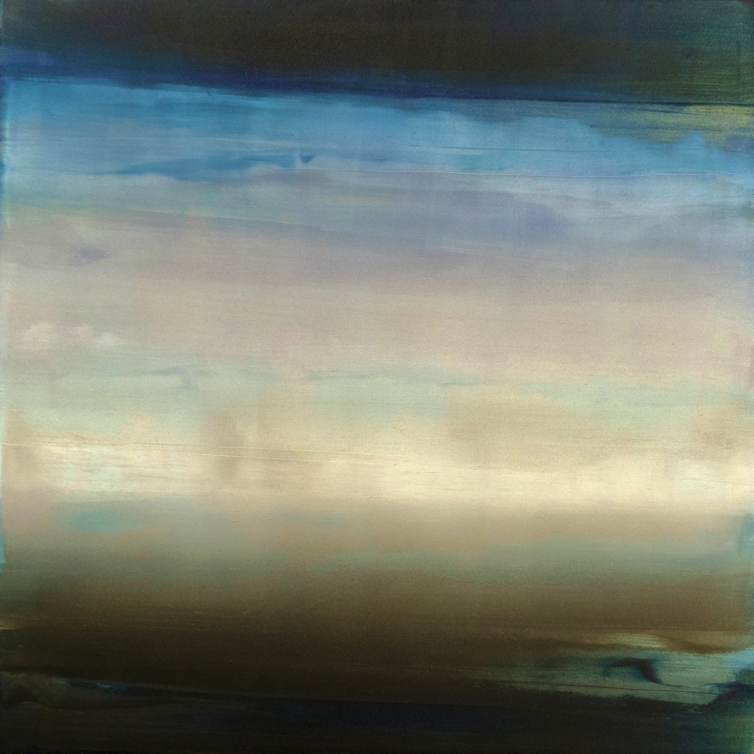 “Dusk on the Reach,” oil and cold wax on cradled birch panel, 24" x 24"x 1.5", 2025