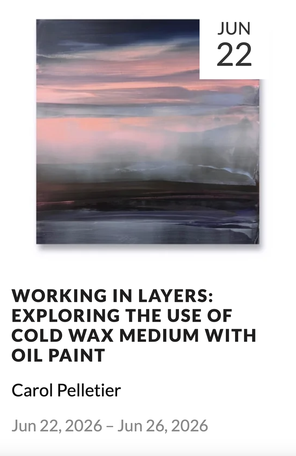 “Dusk on the Reach,” oil and cold wax on cradled birch panel, 24" x 24"x 1.5", 2025 Currently at the Bromfield Gallery, Boston, MA